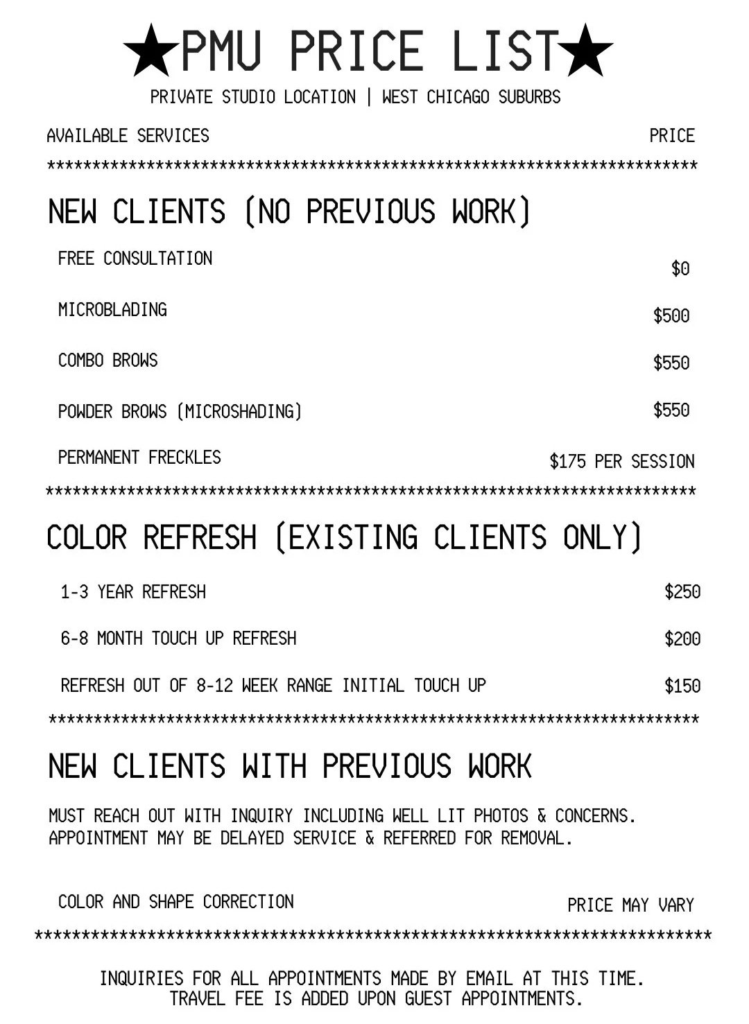 All permanent makeup appointments are currently held in a private studio in Villa Park, Illinois ONLY.